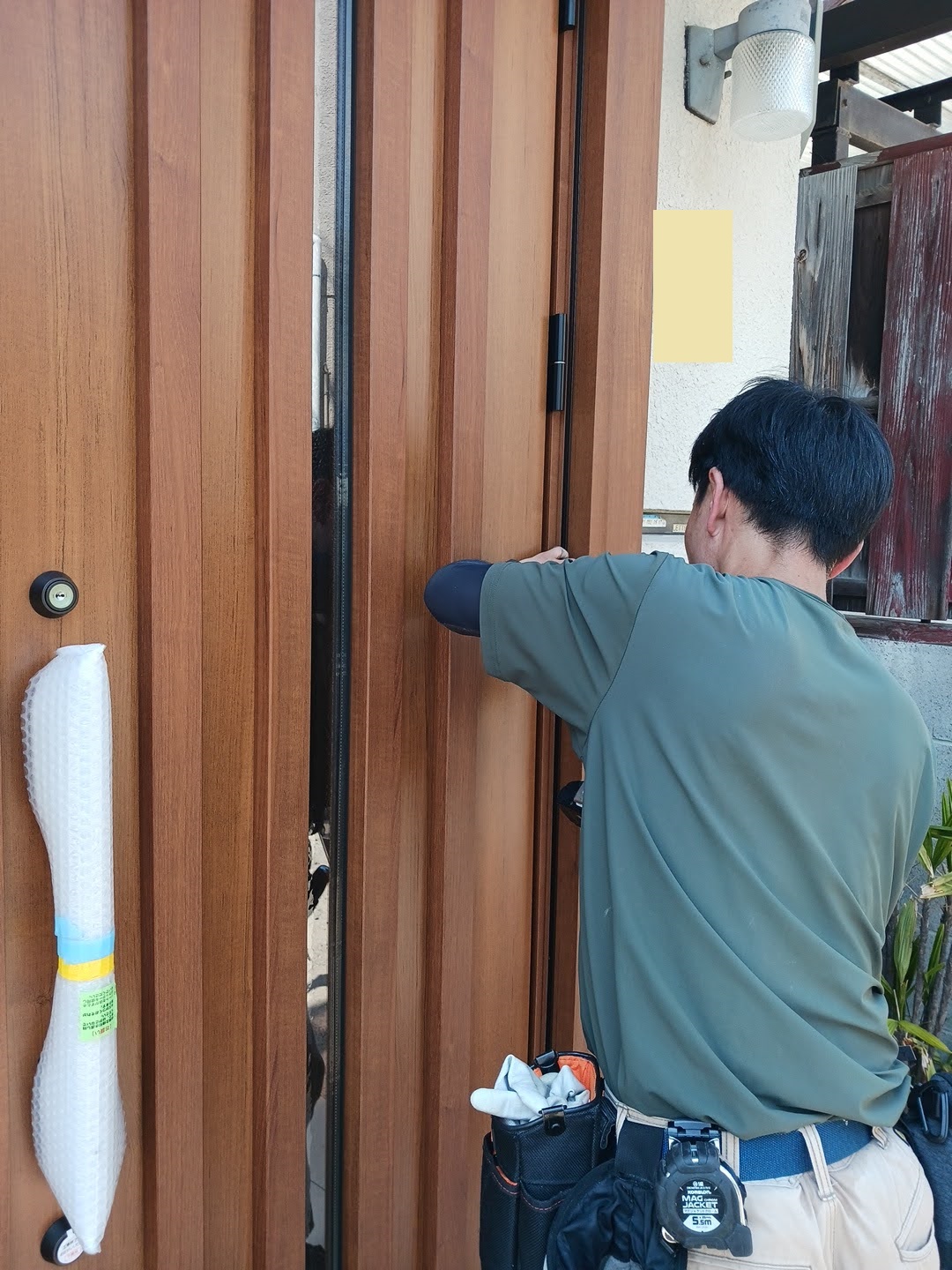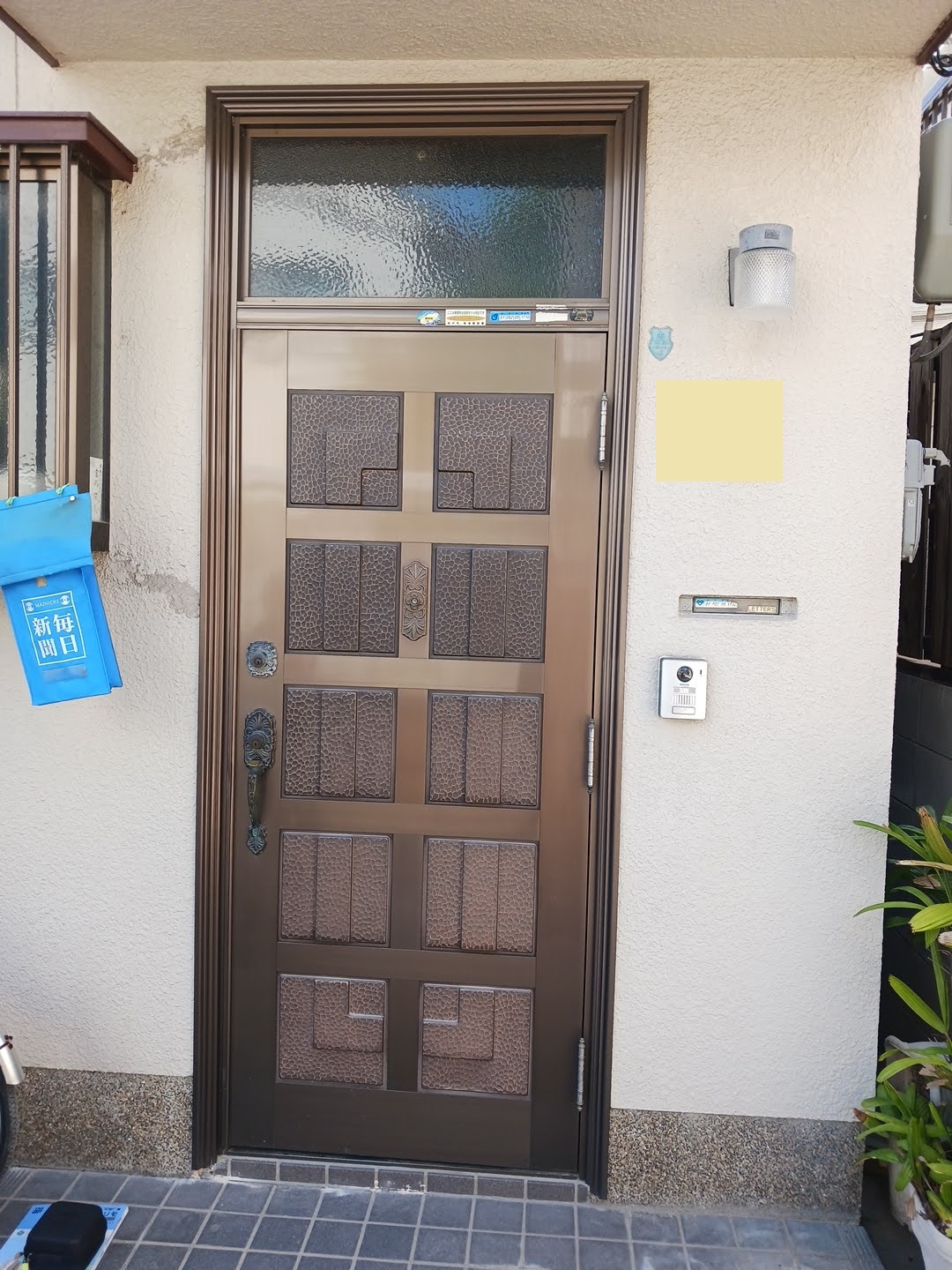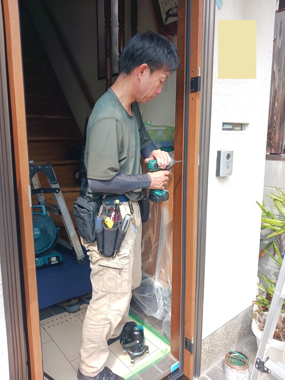 お客様から「玄関ドアの開け閉めがしにくいので、取り換えたい。」とご要望を頂きました。
