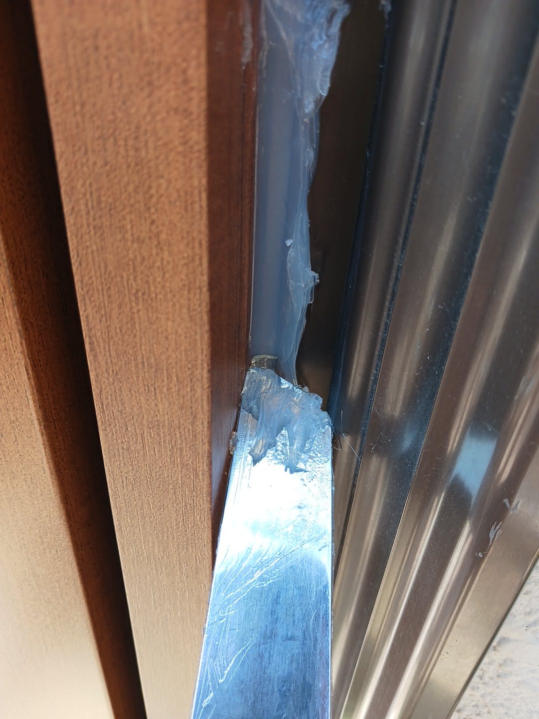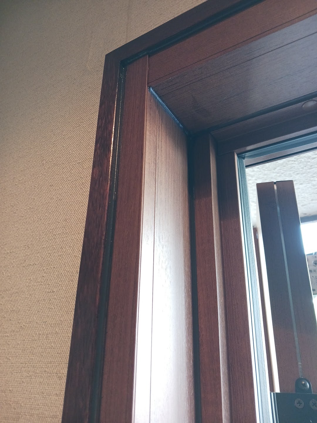 カバー材を取付出来たら、カバー材と既存枠との間もコーキング処理します。