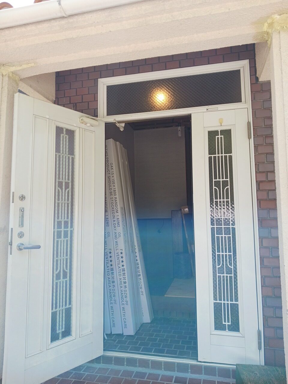 本日ご紹介するのは、先日お伺いした玄関ドアのお取替えの現場です。お客様から「玄関ドアが古くなってきたので、おしゃれな玄関ドアに取り換えたい。」とご要望を頂きました。現状は一般的なアルミドアでした。