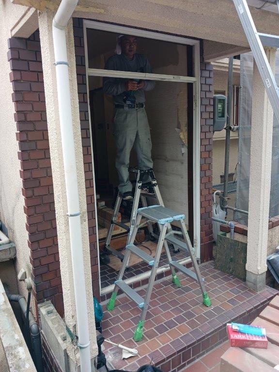 今回は、ランマ付きのドアでしたので、ランマの無目をカットして取り付けました。