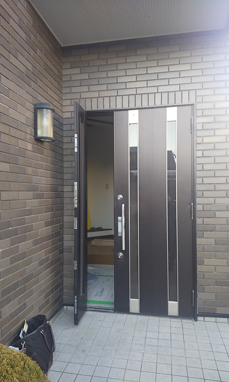 本日ご紹介するのは、先日お伺いした玄関ドアのお取替えの現場です。お客様から「お家のリフォームに合わせて、玄関ドアも取り替えたい。」とご要望を頂きました。現状は、一般的なアルミ製の玄関ドアでした。現調時に気になったのは、お家の駐車場からの導線と同じ方向に親扉があることで若干不便に感じる事があるかな?という点でした。