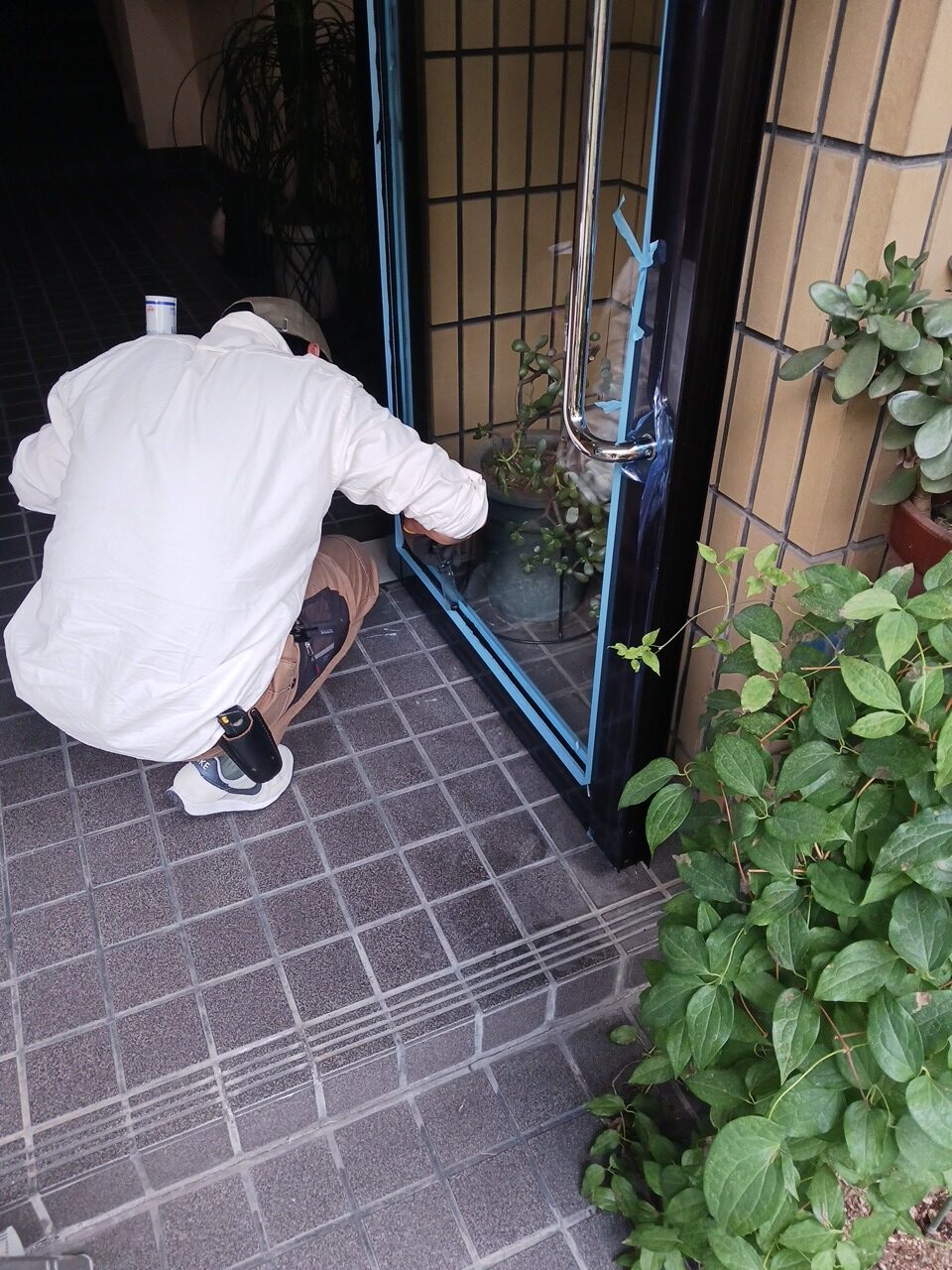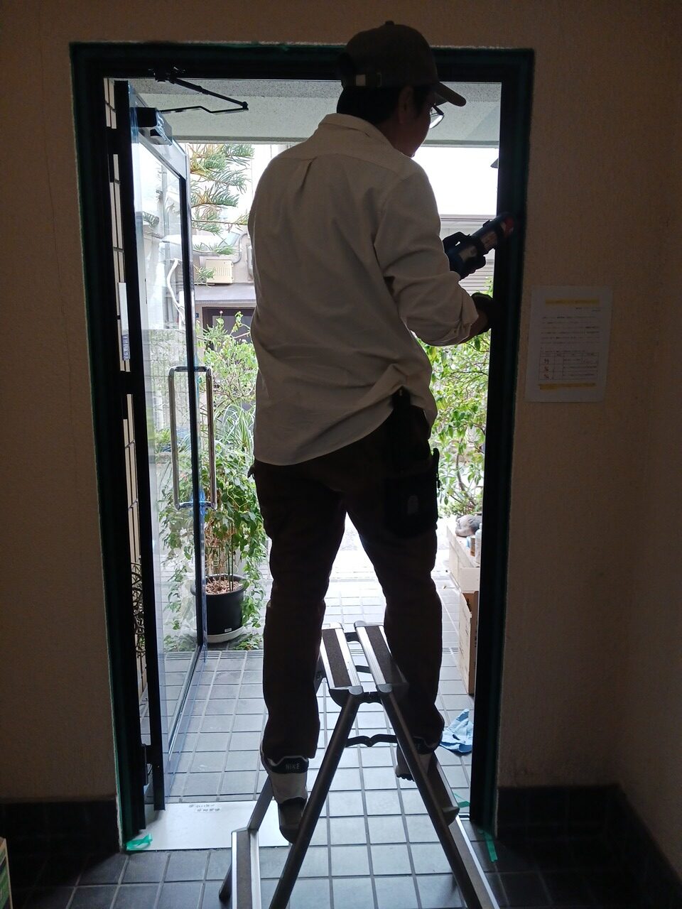 枠周りもコーキング処理したら、完成です!!マンションドアのお悩みは、ぜひ弊社にご相談下さい!お見積もり、現場調査は無料です!!
