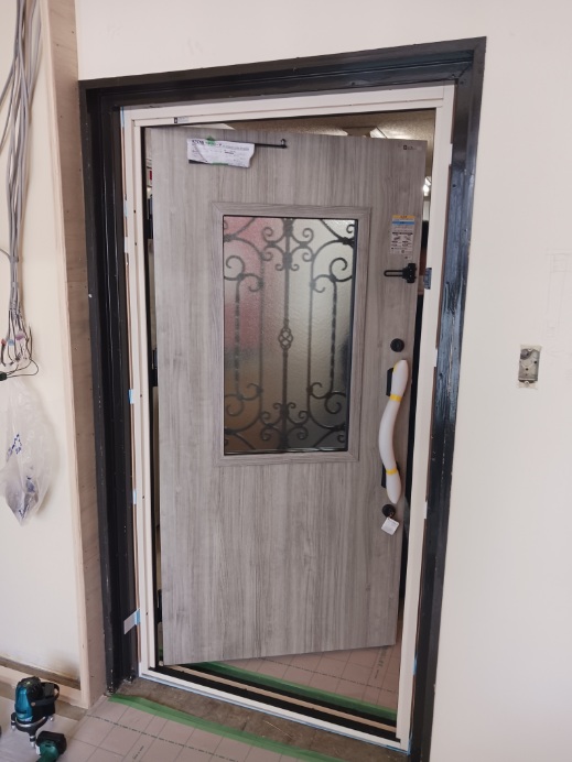 本日ご紹介するのは、先日お伺いした店舗の入り口ドアのお取替えの現場です。お客様から「店舗の入り口のドアをオシャレな物に取り替えたい。」とご要望を頂きました。既存は、味気ないのっぺらぼうのドアでした。店舗の入り口としてはちょっとさびしいドアですね…