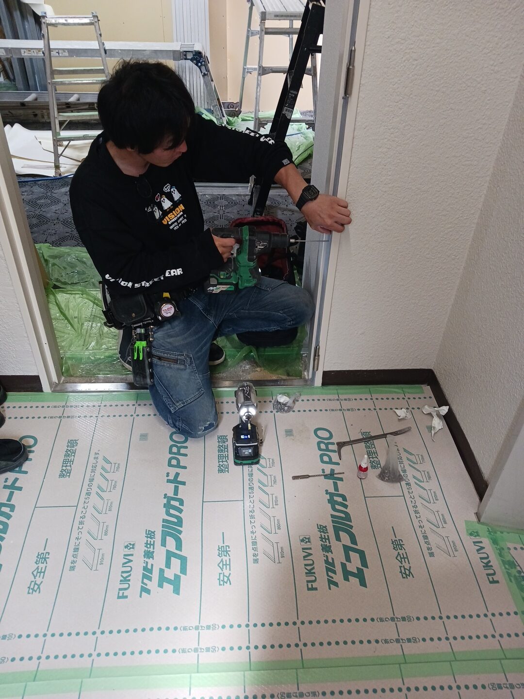 まずは、既存のドアを取り外して、古い金物の撤去していきます。