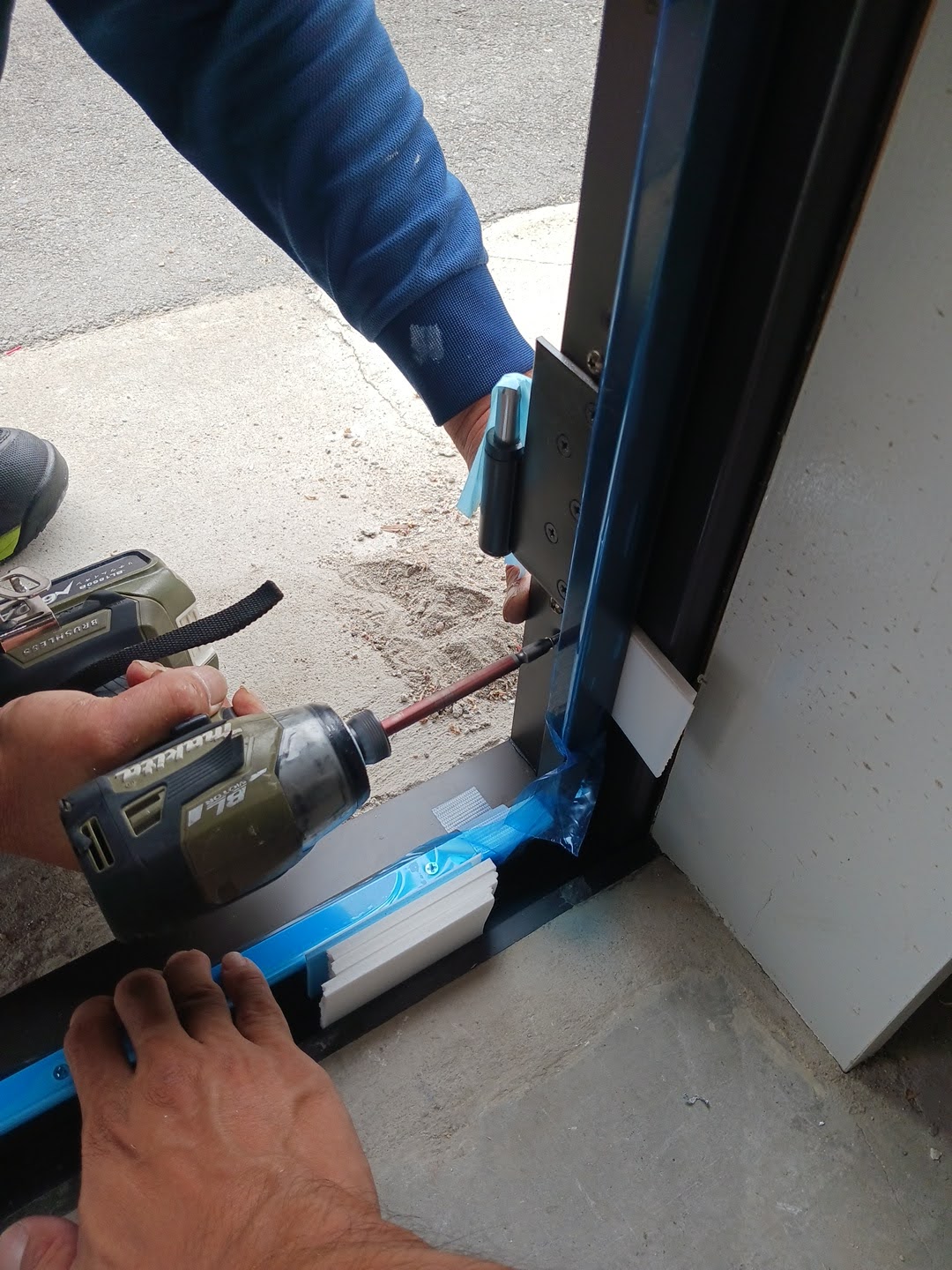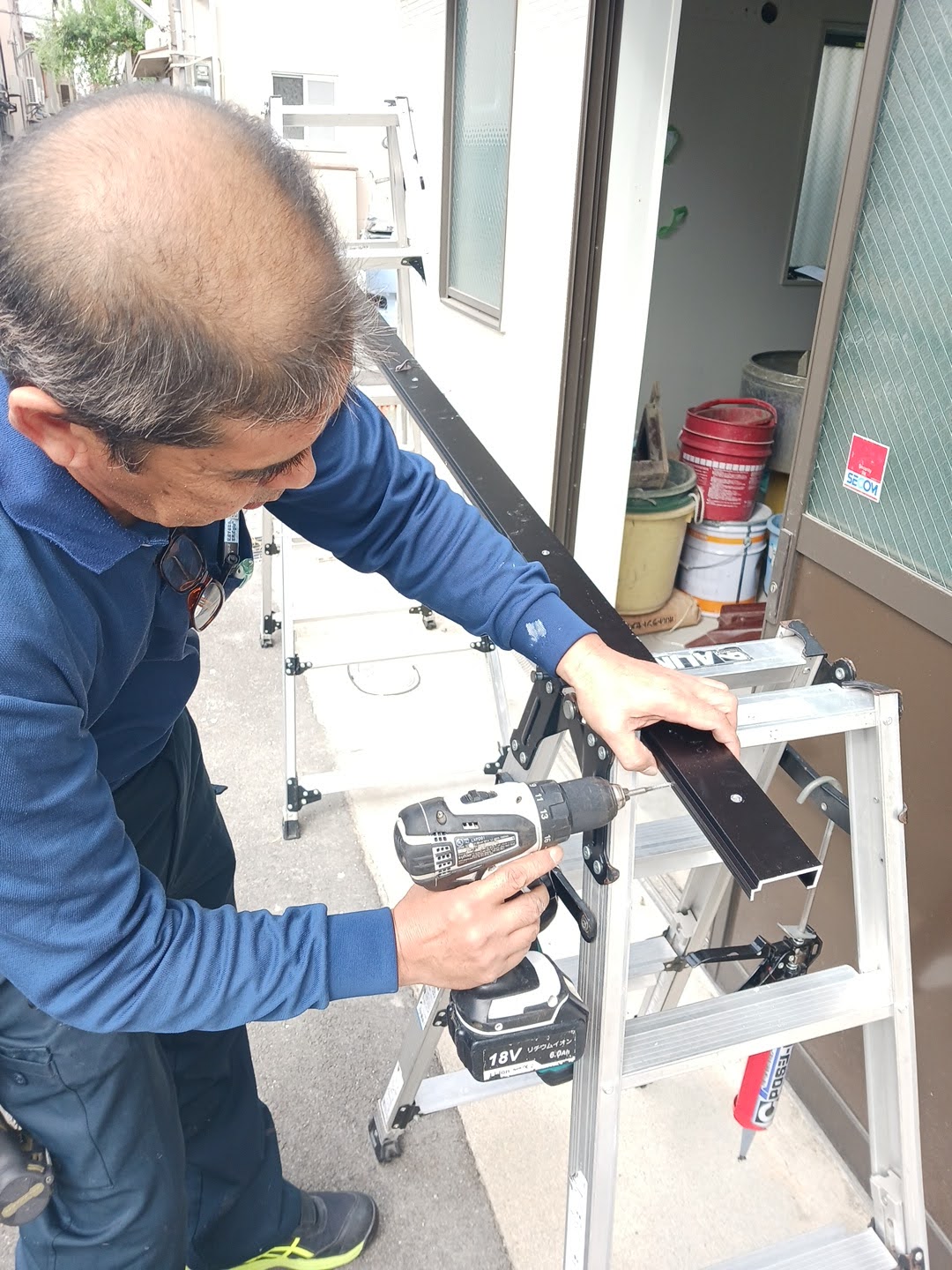 既存の障子(開け閉めする部分)を撤去したら、アルミの下地材を固定していきます。