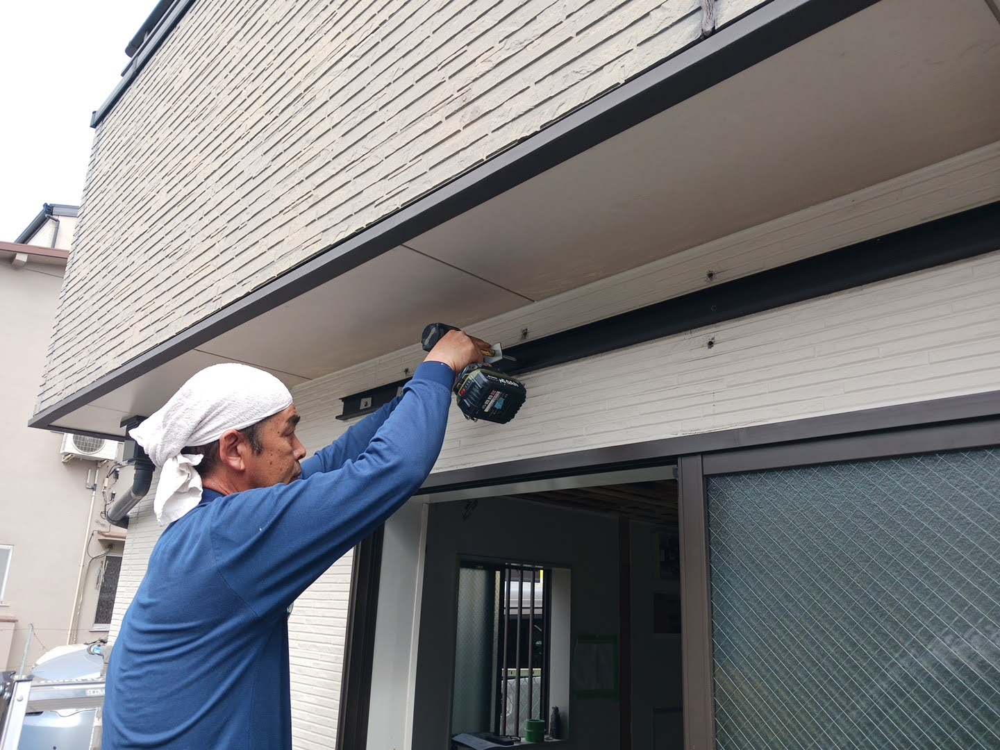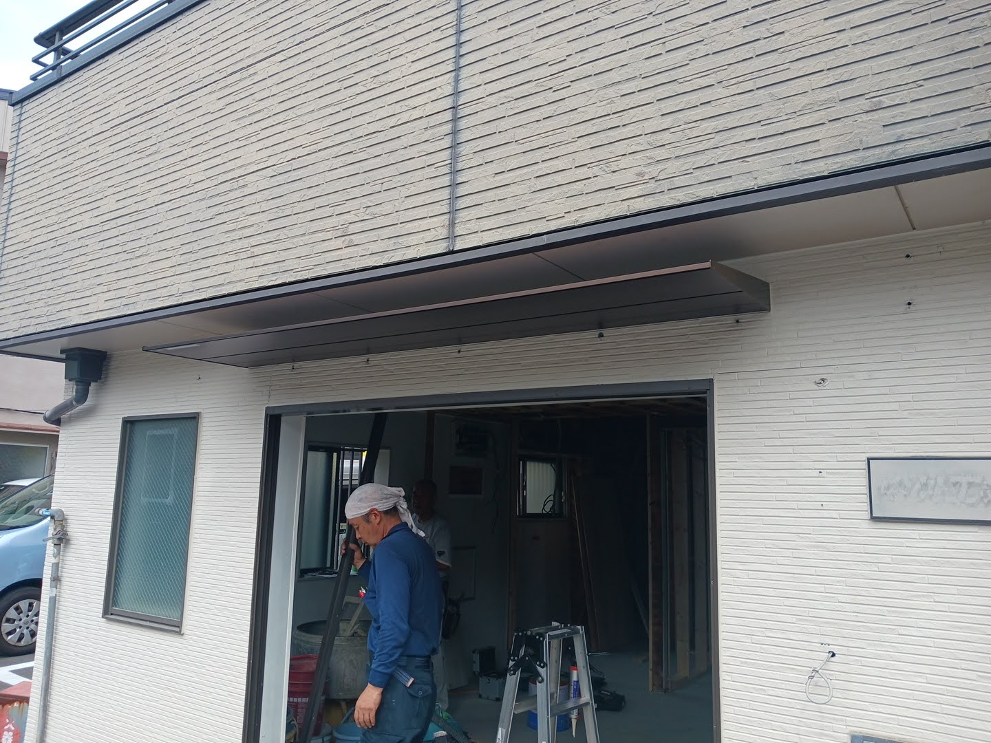 ひさしの上部と外壁の取り合いをコーキング処理して完了です。