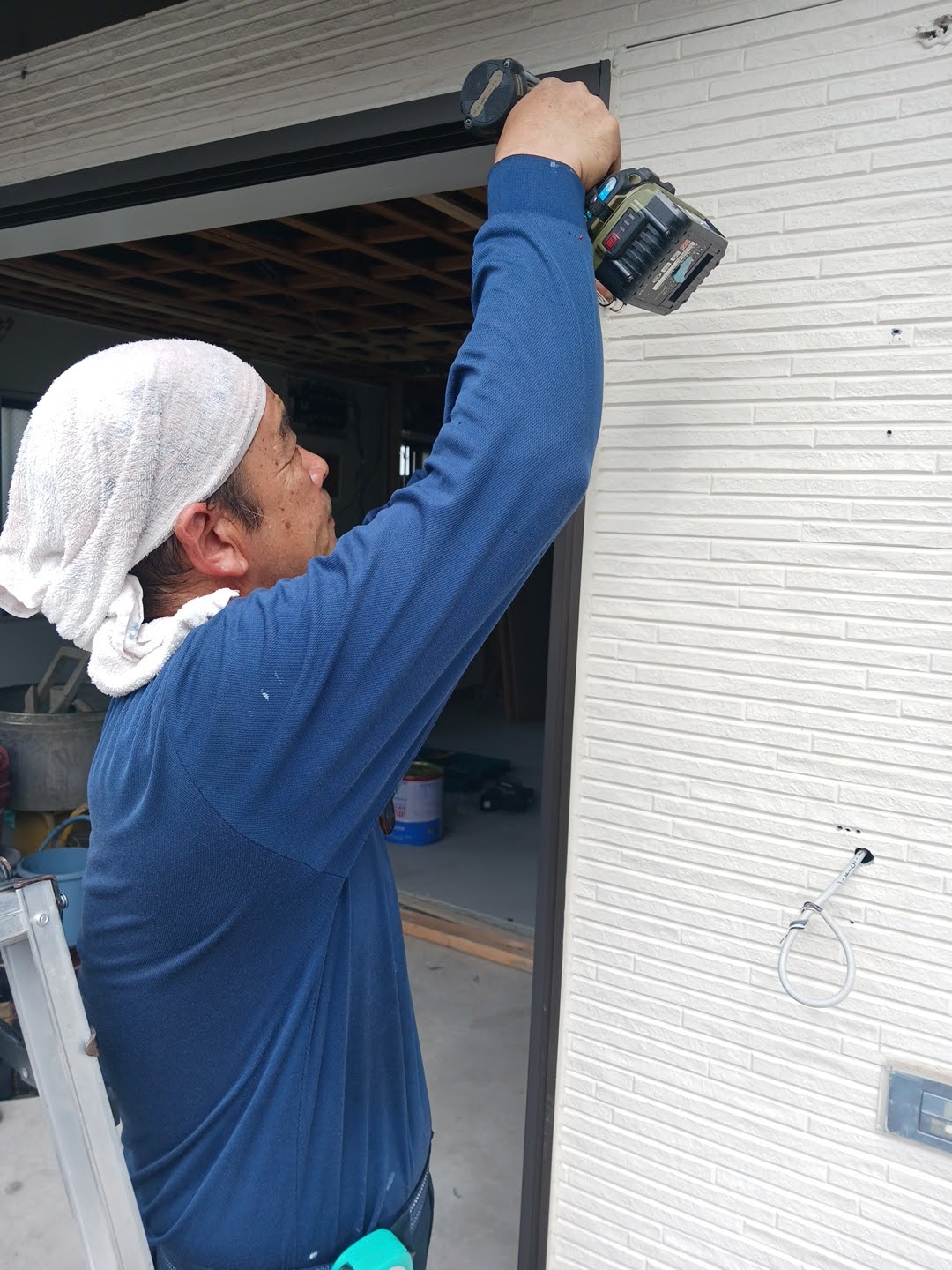 この時、新しい枠に歪みが無いように水平、垂直を確認しながら取り付けていきます。