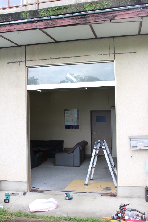 吹田市にて店舗入口にアルミガラス3枚引戸を取り付けいたしました。