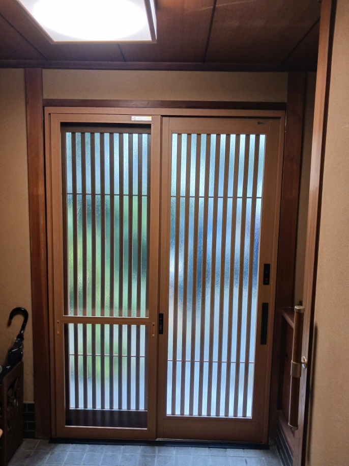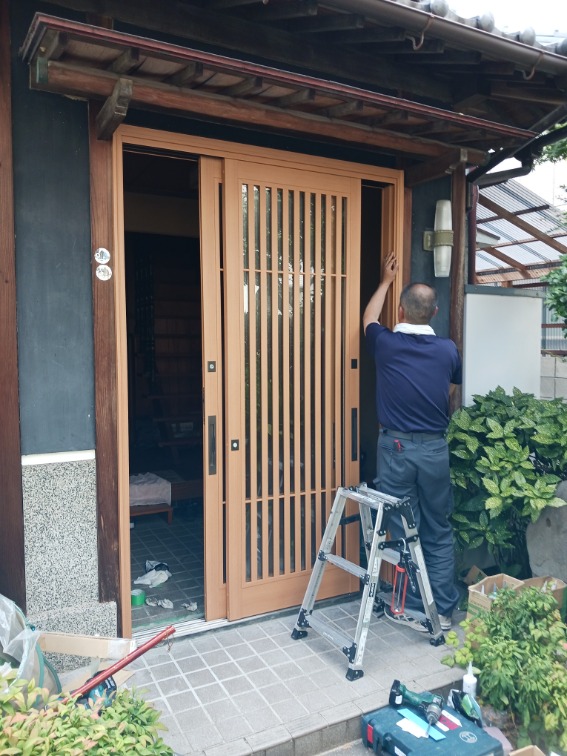 吹田市 木製玄関引き戸からアルミ製玄関引き戸にお取替え!YKK APドアリモ 玄関引き戸