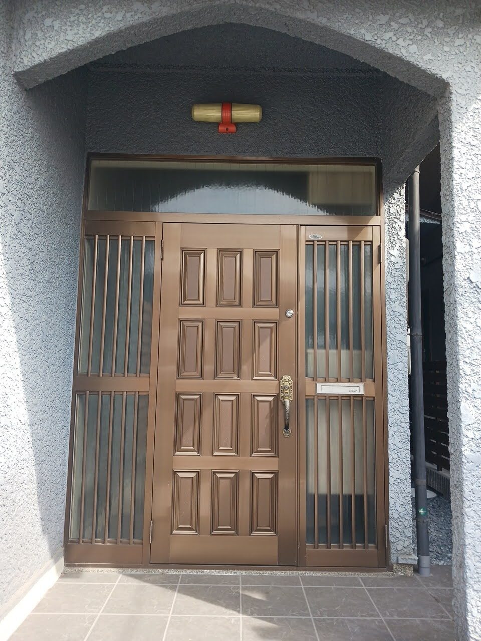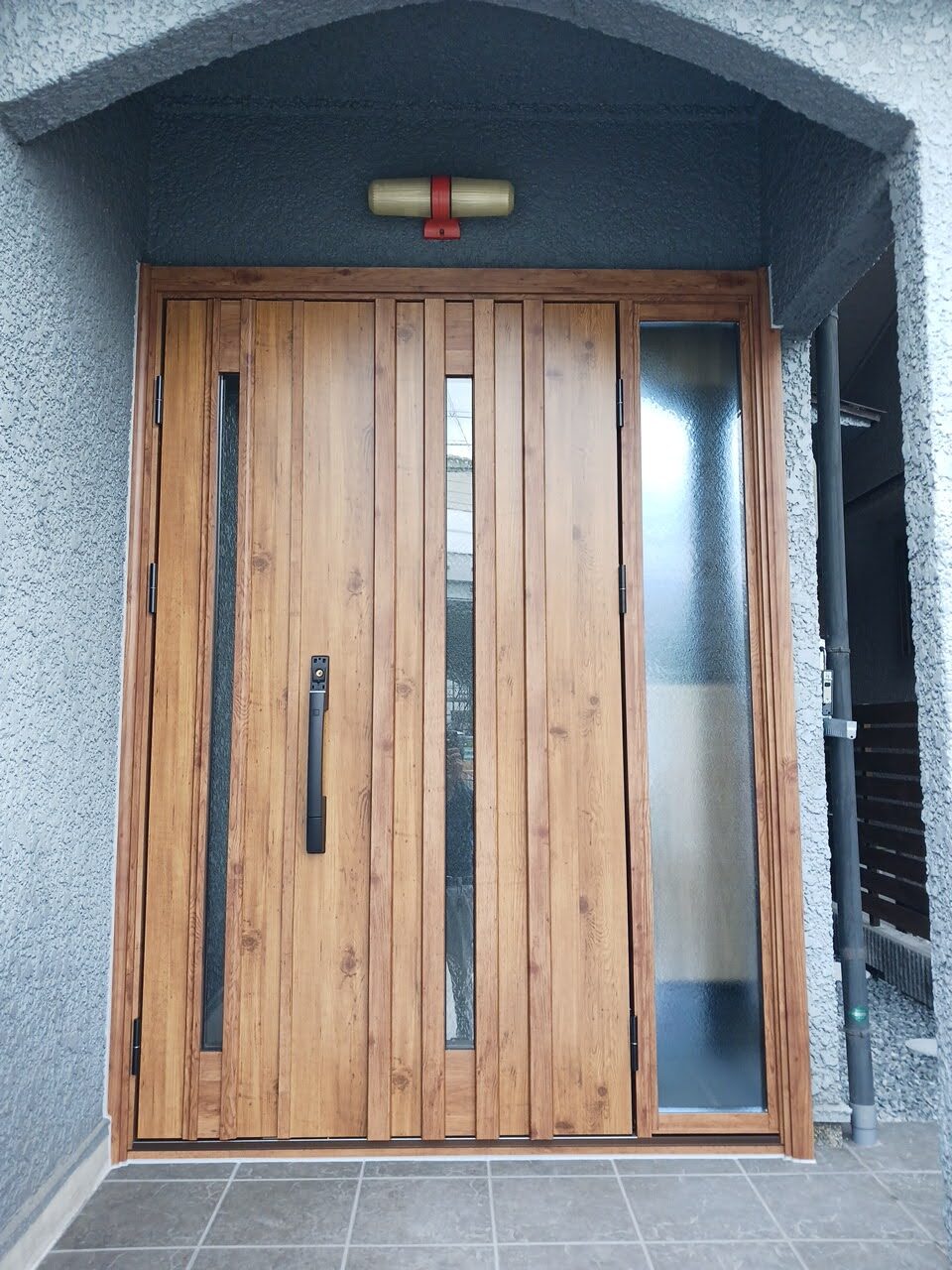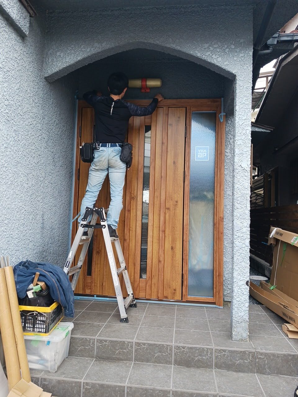 宇治市 袖付きランマ付きの大きな玄関をお取替え!YKK AP ドアリモ