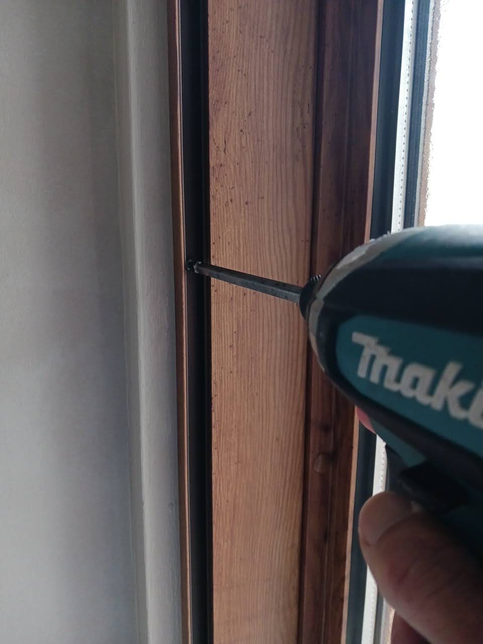 コーキング処理が終わったら、内部外部のカバー材を取り付けていきます。カバー材は、現場にあわせてカットして取り付けます。