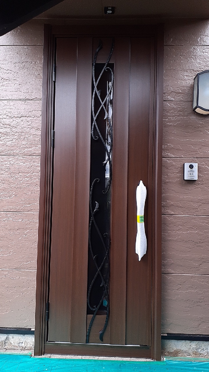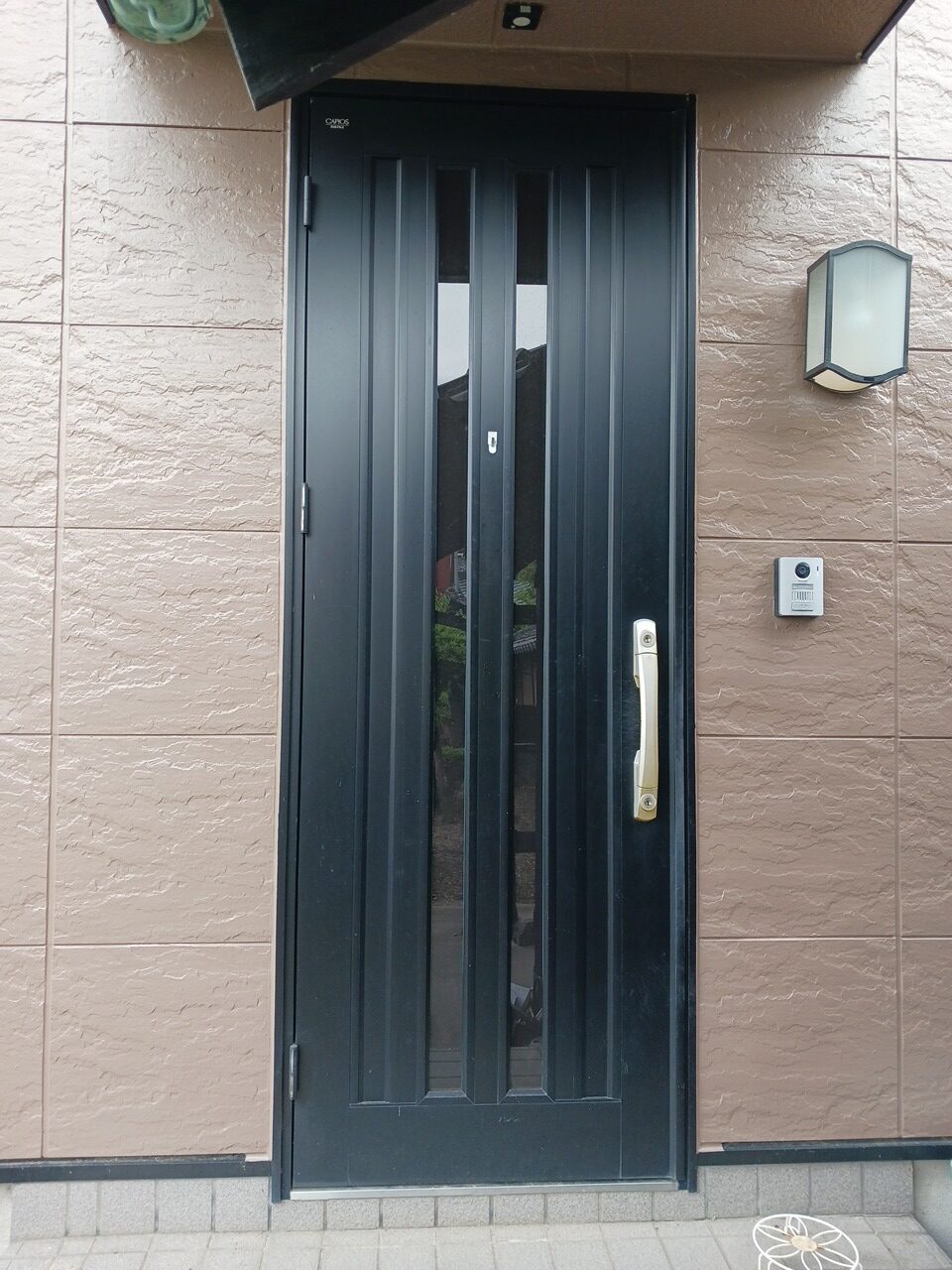 本日ご紹介するのは、先日お伺いした玄関ドアのお取替えの現場です。お客様から「玄関ドアをオシャレなドアに取り替えたい。鍵もリモコンタイプがいい。」とご要望を頂きました。現状は、アルミ製の一般的な玄関ドアでした。