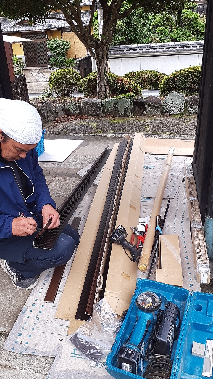 枠が固定出来たら、アルミのカバー材を取り付けていきます。カバー材は、現場に合わせてカットします。