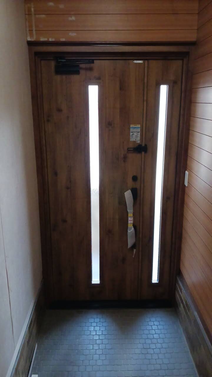 今回は、YKK APドアリモ 玄関ドアでカバー工事させて頂きました。