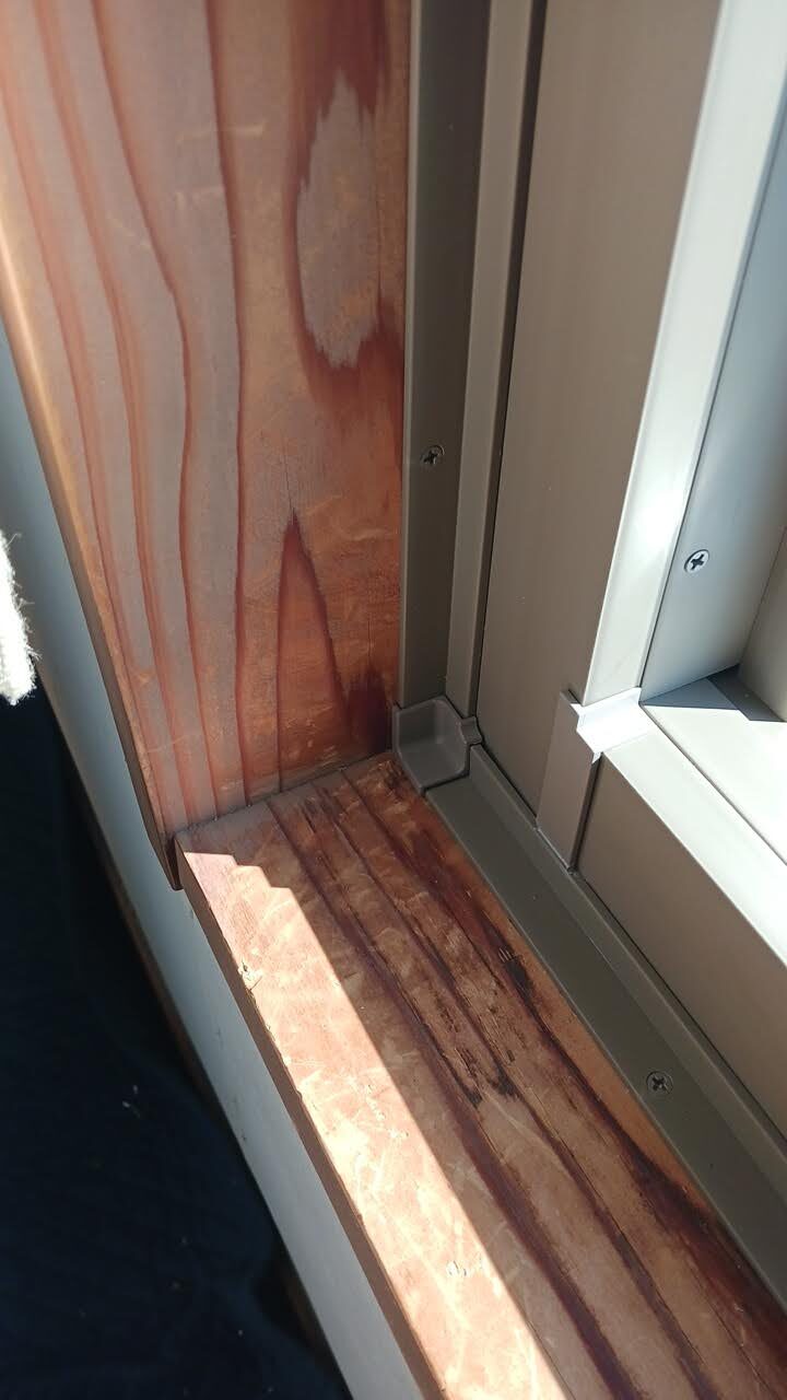 既存枠と新しい枠を防水テープで覆って、雨水の侵入を防ぎます。