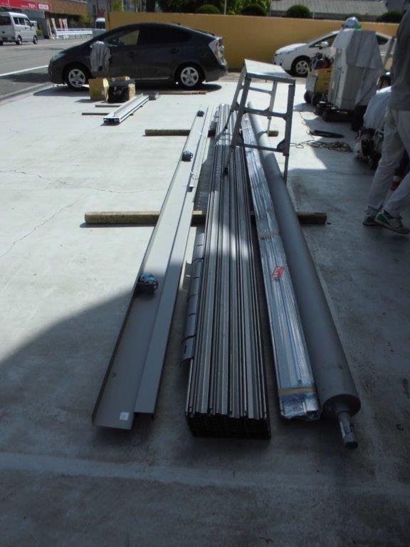 施工中⑦ 新設の重量シャッターのシャフトとスラットです。