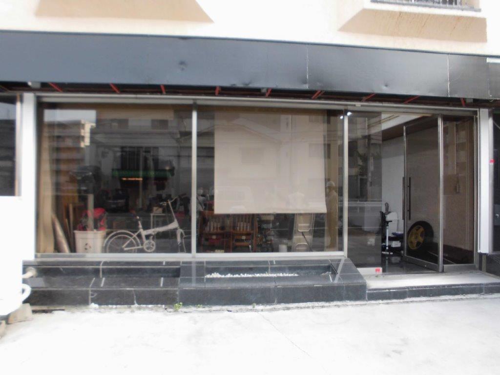 施工前 マンション1F店舗前に設置しています、重量シャッター(幅6.6m 高さ2.2m)が全く動かなくなり、メンテナンス可能か検討しましたが、30年以上前の商品で、モーター、駆動装置等の交換が出来ないと判断し、新しいシャッターに取替する事となりました。