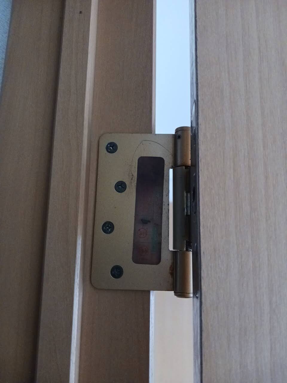 新しいドアは耐久性重視で、一般的なギボシ丁番にしました。