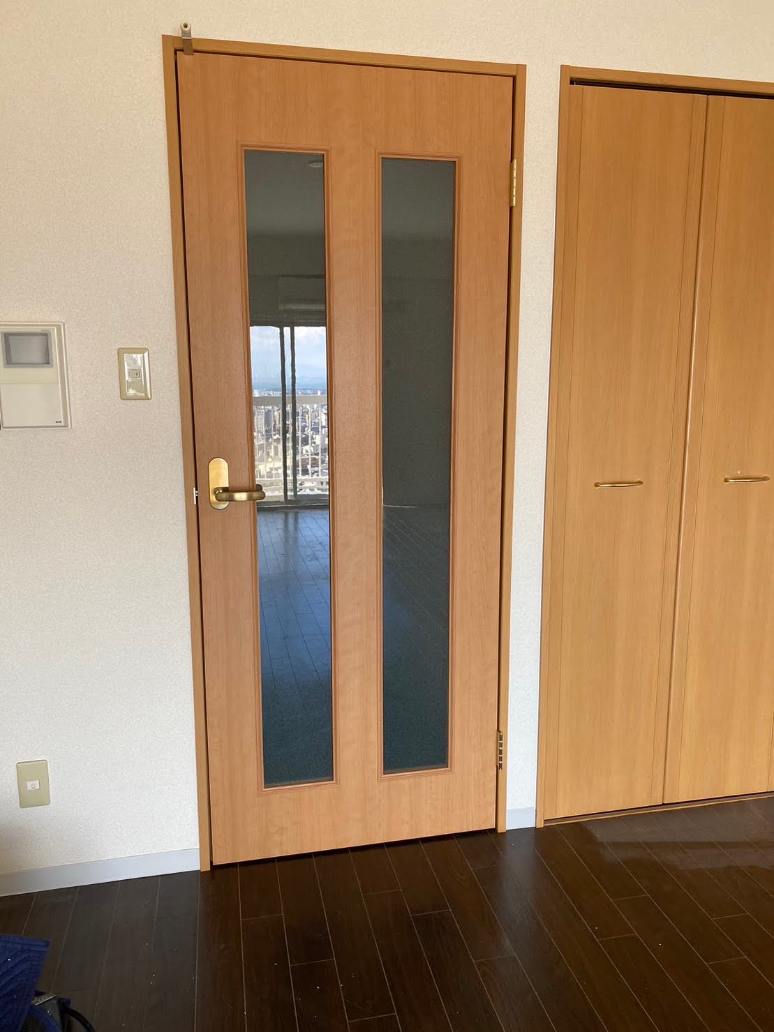 お客様から「室内の木製のドアが床にこすれて開閉ができないので取り換えたい。」とご要望を頂きました。