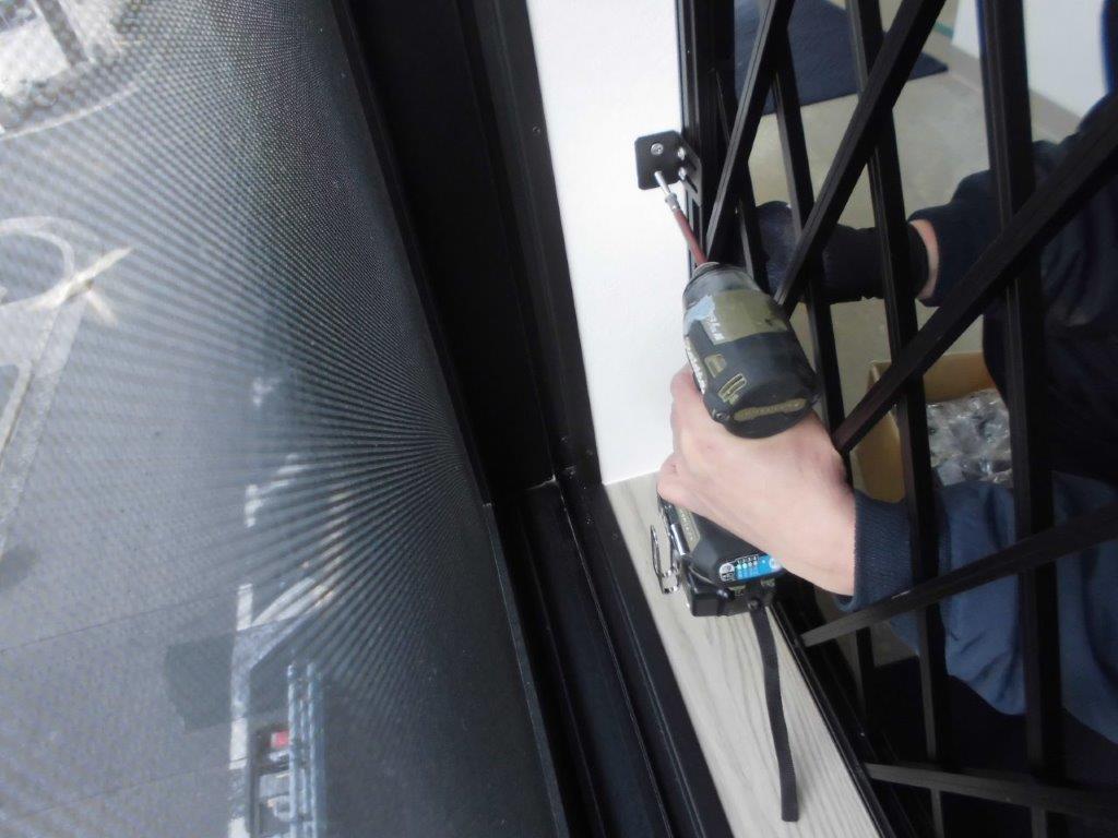吹田市 転落防止の為、部屋内窓枠にクロス面格子ブラック色3カ所取付しました。|