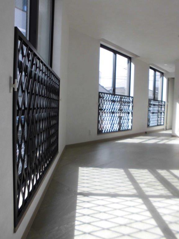 施工後 計3カ所の取付完了です。今回は内部側に落下防止の為にクロス面格子取付しましたが、主に1Fアルミサッシの外部に防犯用として利用致します。