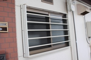 吹田市 既存引き違い窓2カ所にアルミ縦面格子を取付しました。