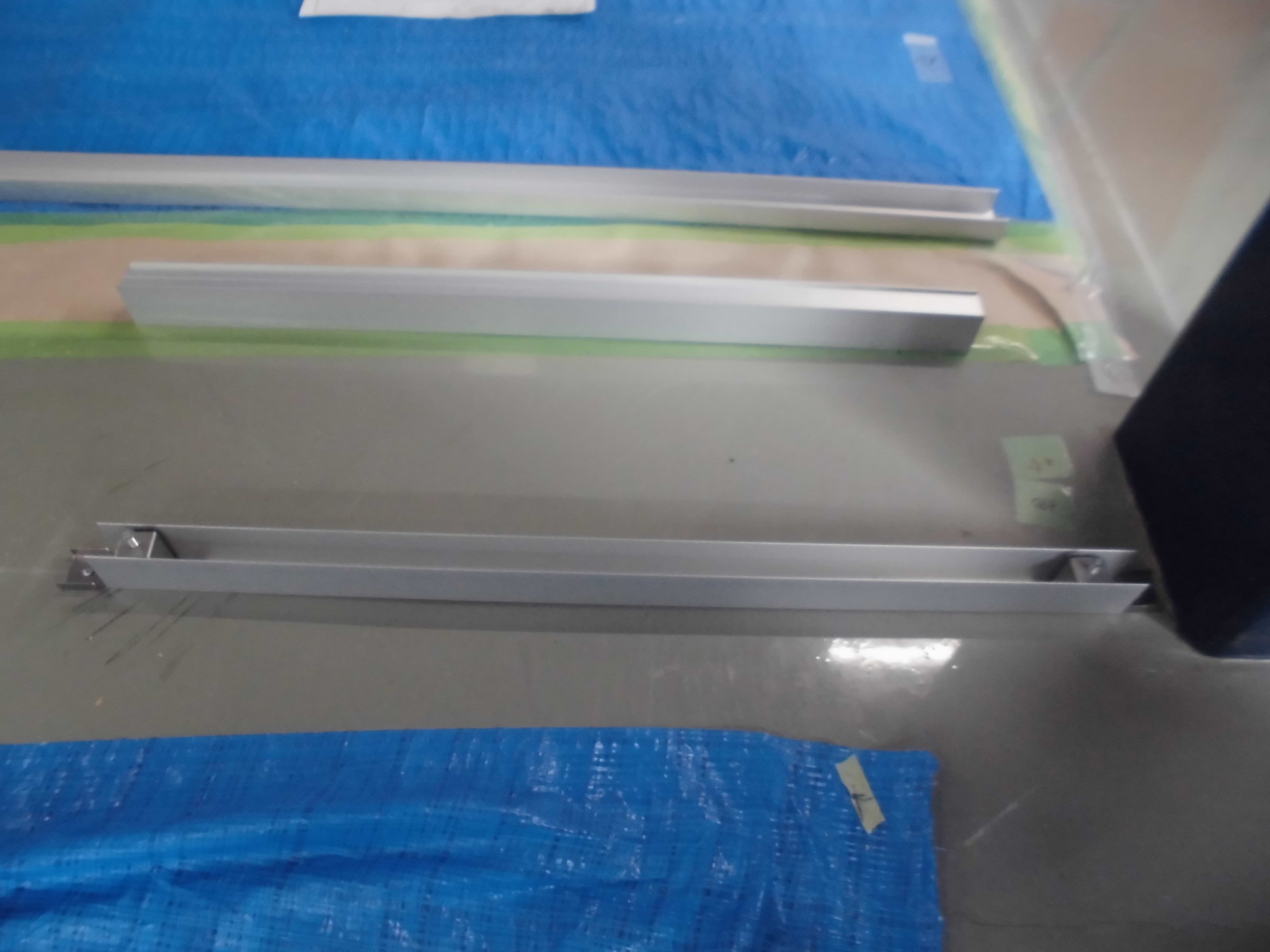 施工中⑤別場所上部にベースプレートを設置ビス止めしている所です。