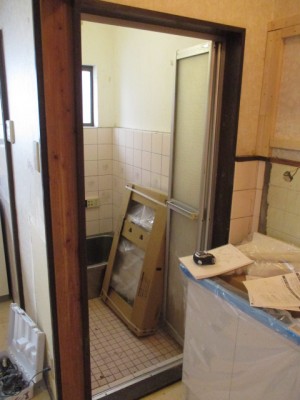 使いにくので浴室ドアから中折ドアに取替えます。 大阪府吹田市