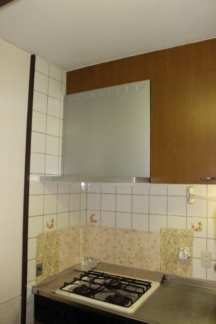 新しいレンジフードの取付けが完了しました。見た目もすっきりしました。