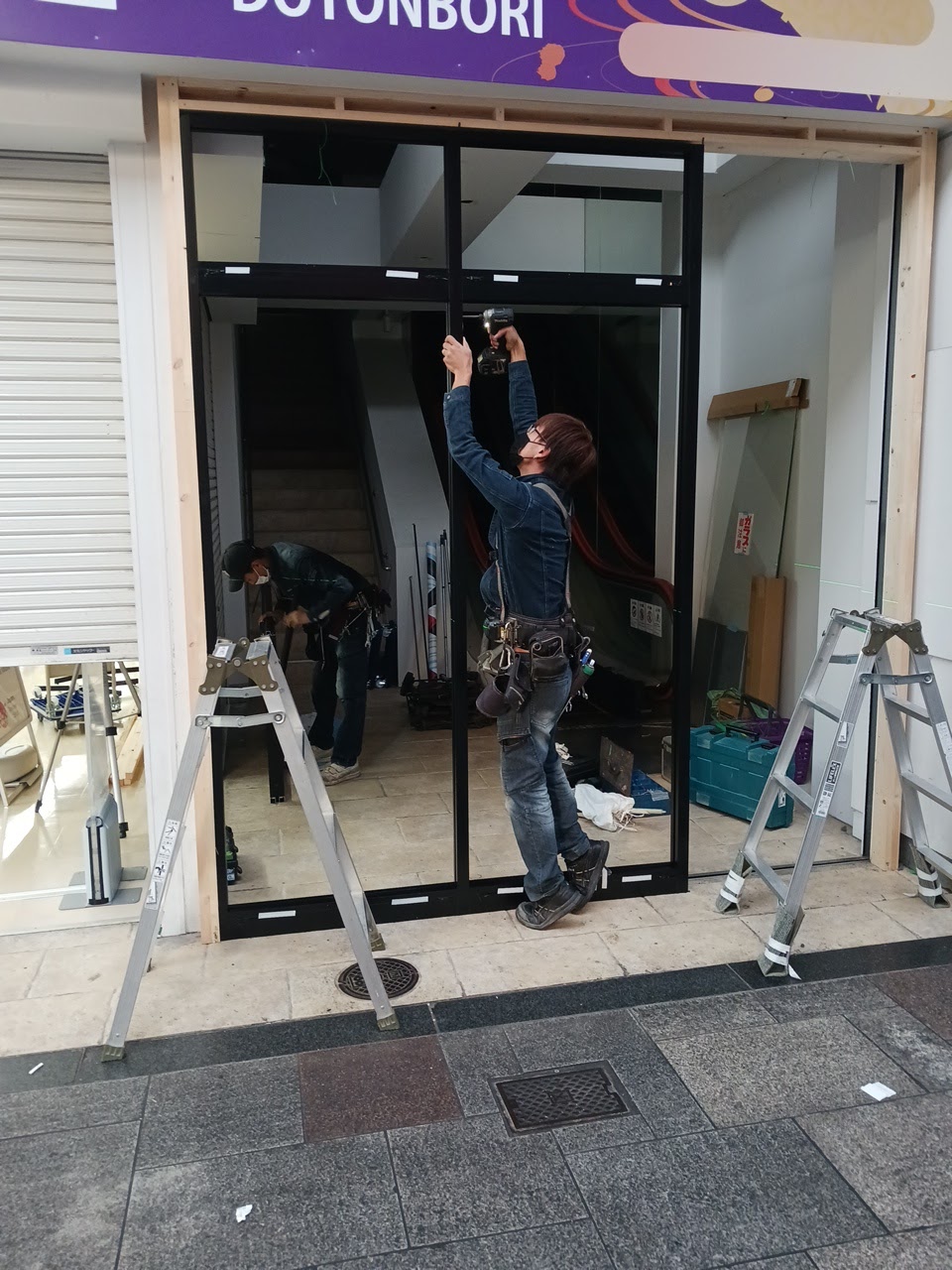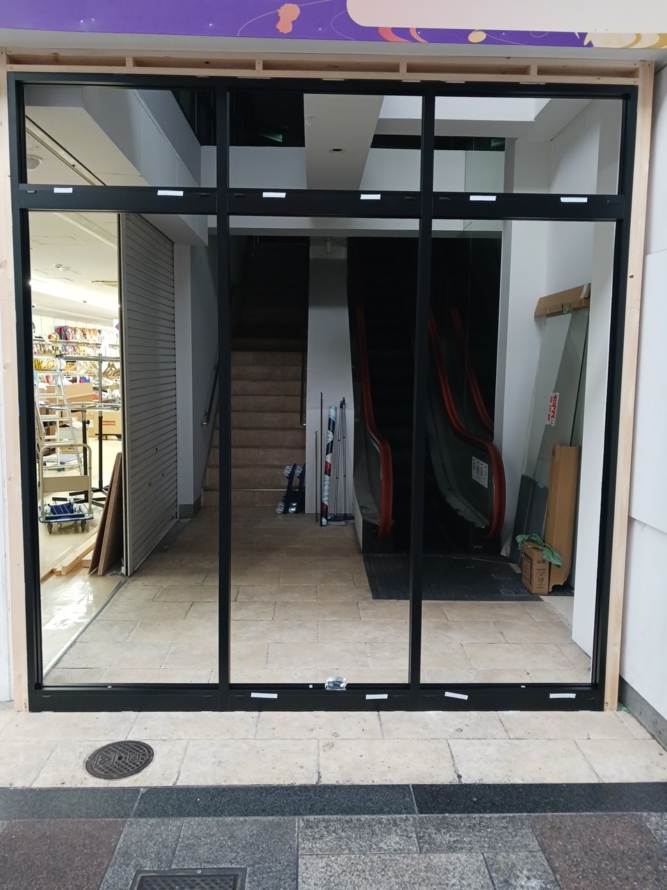 大阪市 新しい店舗に店舗用Fix窓をお取り付け致しました!アルミフロントFix