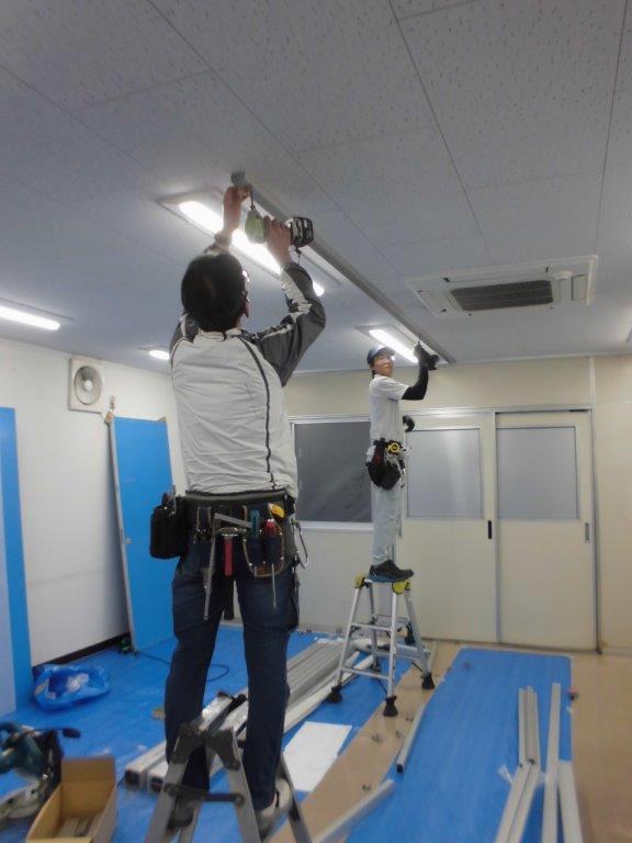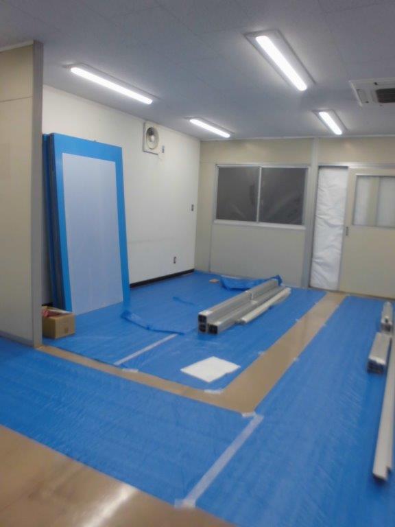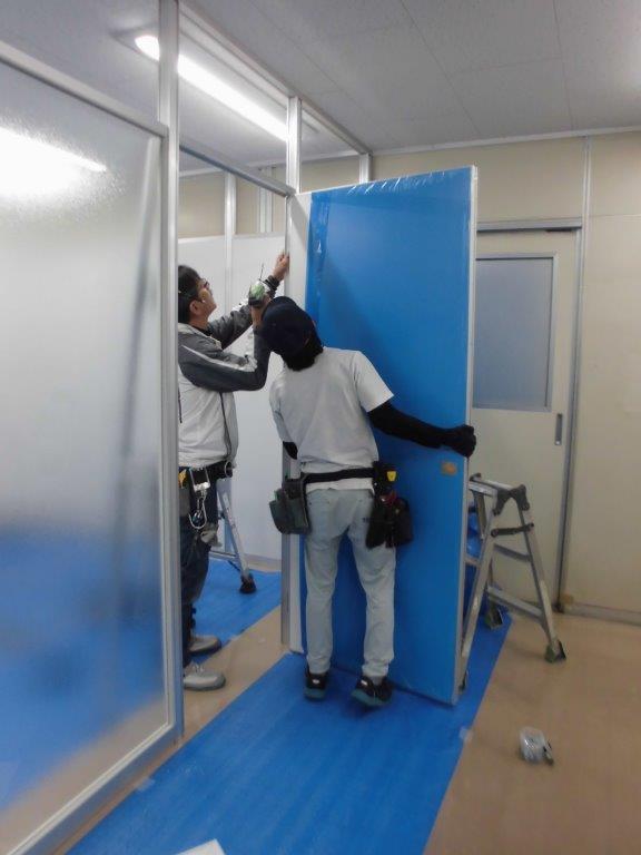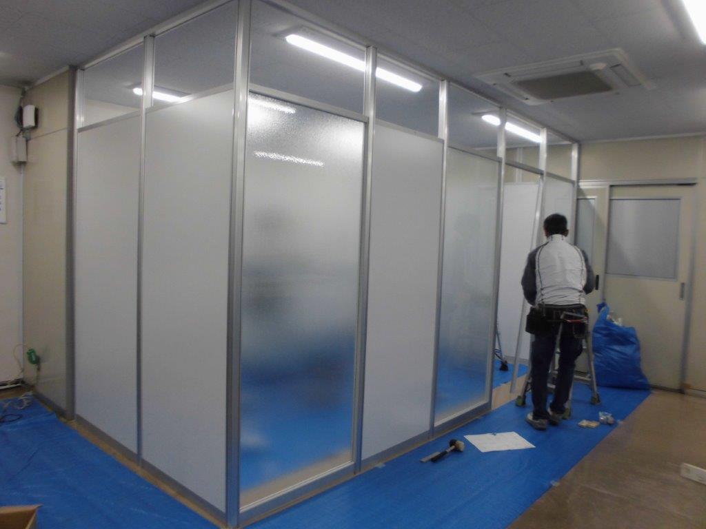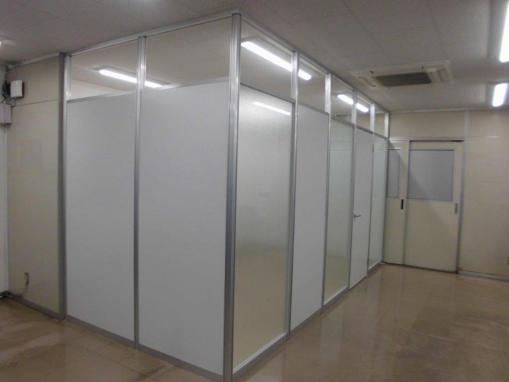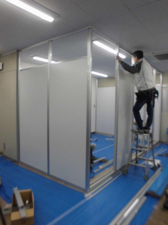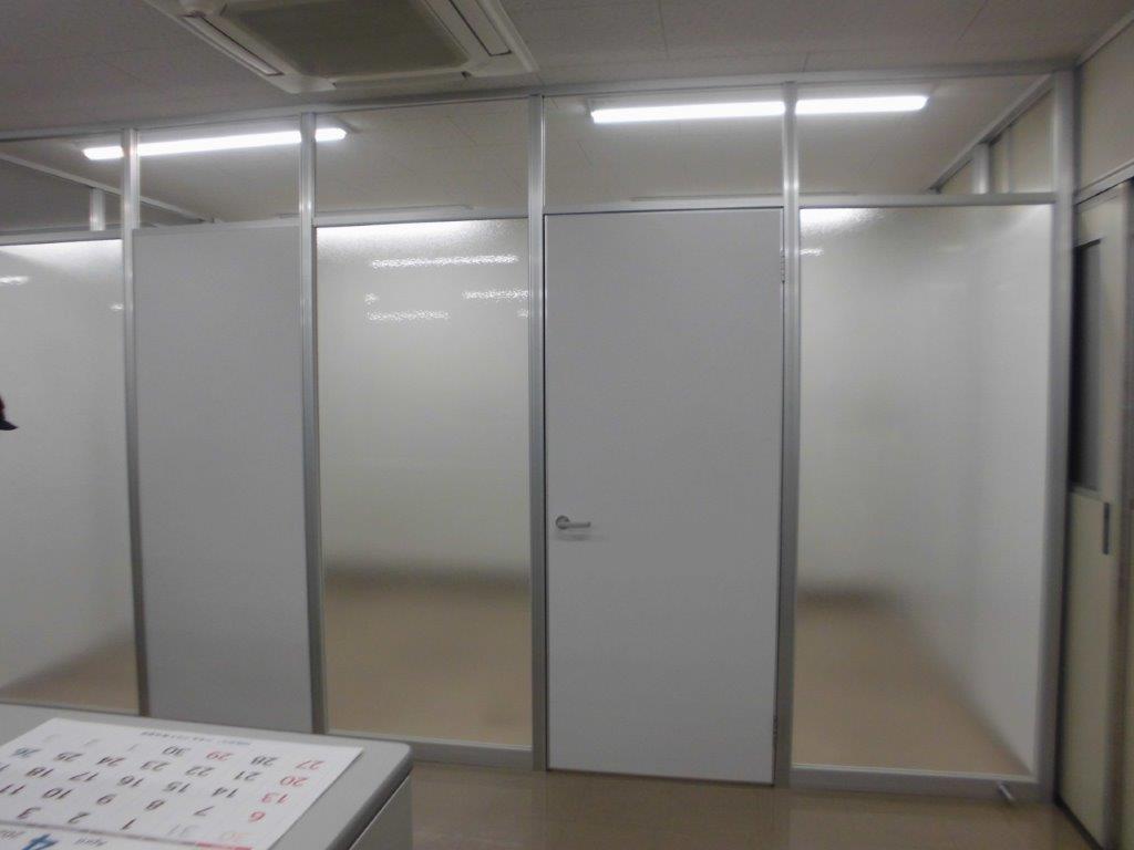 吹田市 事務所内空きスペースをパーティションで仕切り応接室を1日で作りました。その施工工程です。