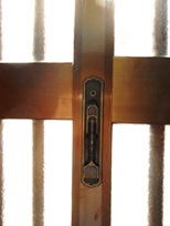 ツルマルサッシメーカーの同じ引戸錠は、手に入りませんので当店は、こちらのAGENT製「万能引戸錠」をお勧めさせて頂きました。既存枠の色に合わせ、ブロンズにしました。