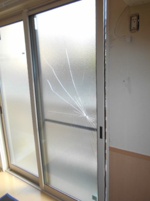 複層防犯硝子が割れました!硝子取替工事。京都府京都市