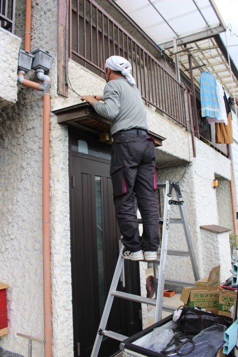 大阪府吹田市にて玄関ドアの上から雨漏りする為、庇廻りのシーリング防水を行ないました。