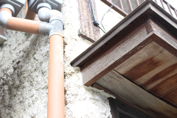 造作大工工事で作られた庇は、経年劣化と庇への雨水の侵入と思われる原因で、軒天部分などもかなり傷んでおりました。