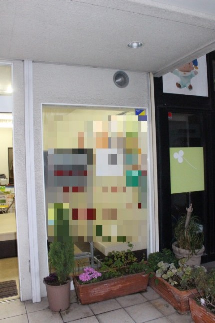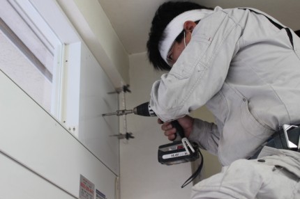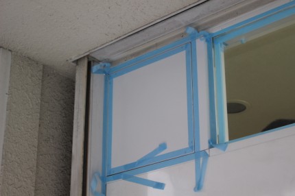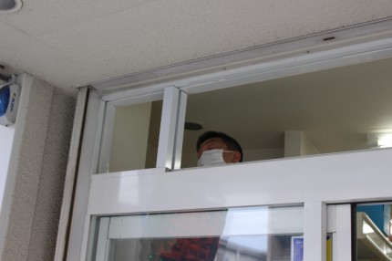 まずは、自動ドアのランマ部分を加工してガラス部分を小さくしました。