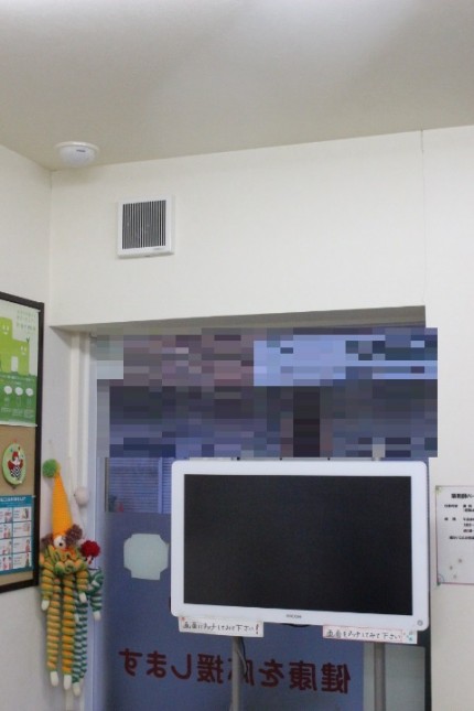 豊中市の薬局のお客様から、新型コロナ対策のために、今までは自動ドアを開けたりして店舗内の換気をしていましたが、冬になり寒くなってきたので自動ドアを開けていると店舗内のスタッフの方やお客様が寒いので自動ドアの付近に換気扇を付けたいとのご相談でした。