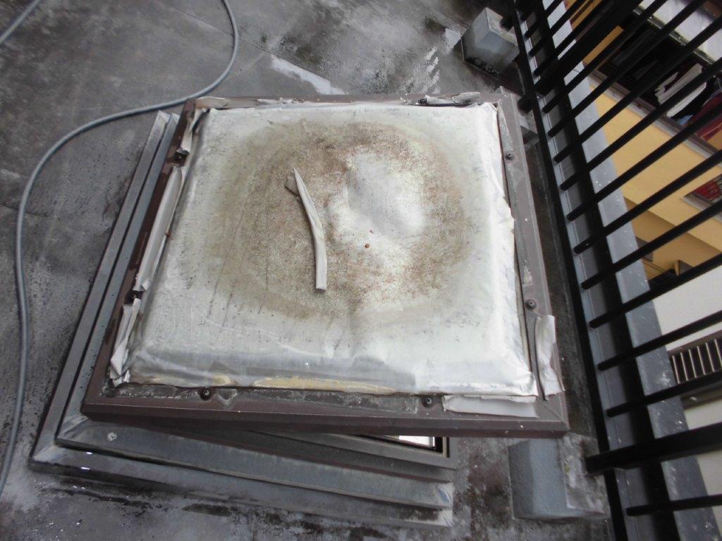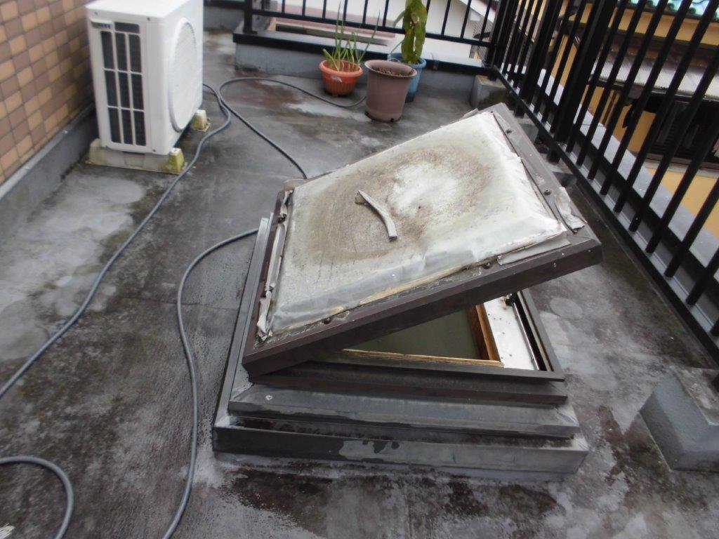 施工前 ご自宅2Fバルコニーにある天窓です。アクリルが長年の日射の影響で、乾燥し破損していました。