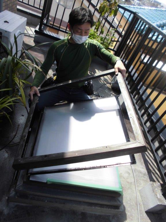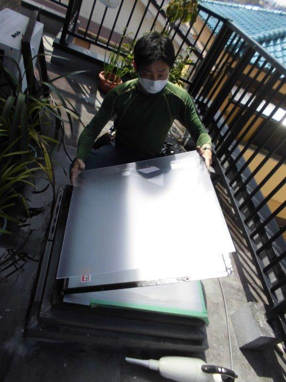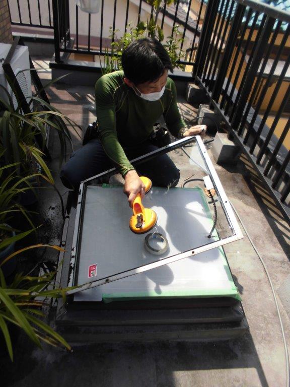 吹田市 ベランダ部天窓の硝子とポリカーボネート板の交換施工例です。