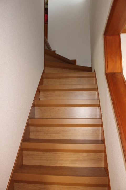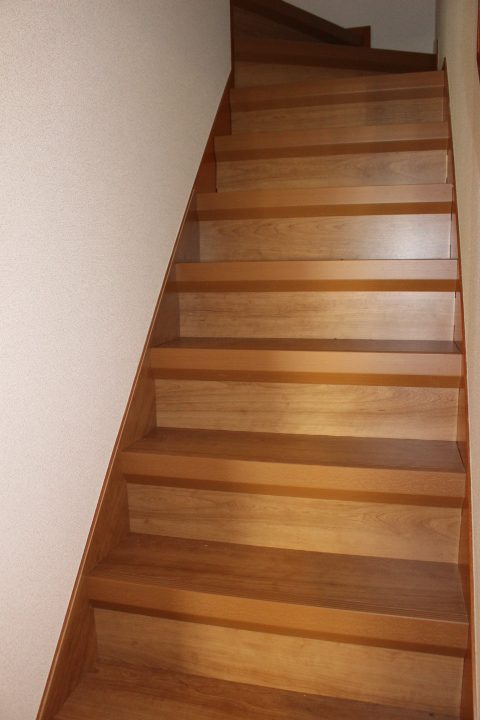 豊中市にてリフォーム階段施工しました。築25年のお家でしたが、今回廊下廻りの床フローリングを施工するにあたり、お客様から階段もキレイにリフォームしたいとのご要望をいただきましたので、階段も同じ色でコーディネートしてリフォームしました。