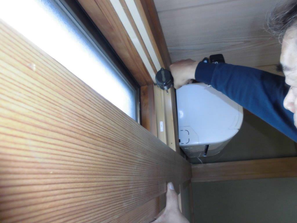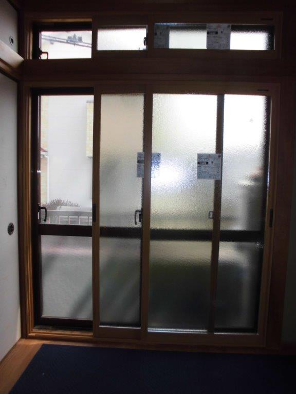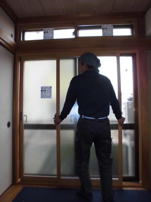 施工後 硝子障子の動作調整、クレセント錠の施錠調整確認をして完成となります。ランマ部が28,000円ランマ下が65,000円合計93,000円の補助金対象になります。