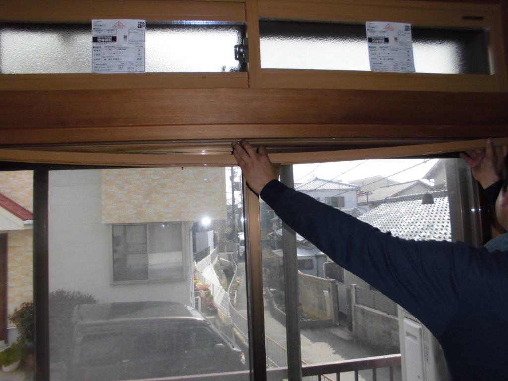 吹田市 2025年度先進的窓リノベ事業補助金対象商品YKKAPプラマードUをランマ付引き違い窓に取付しました。