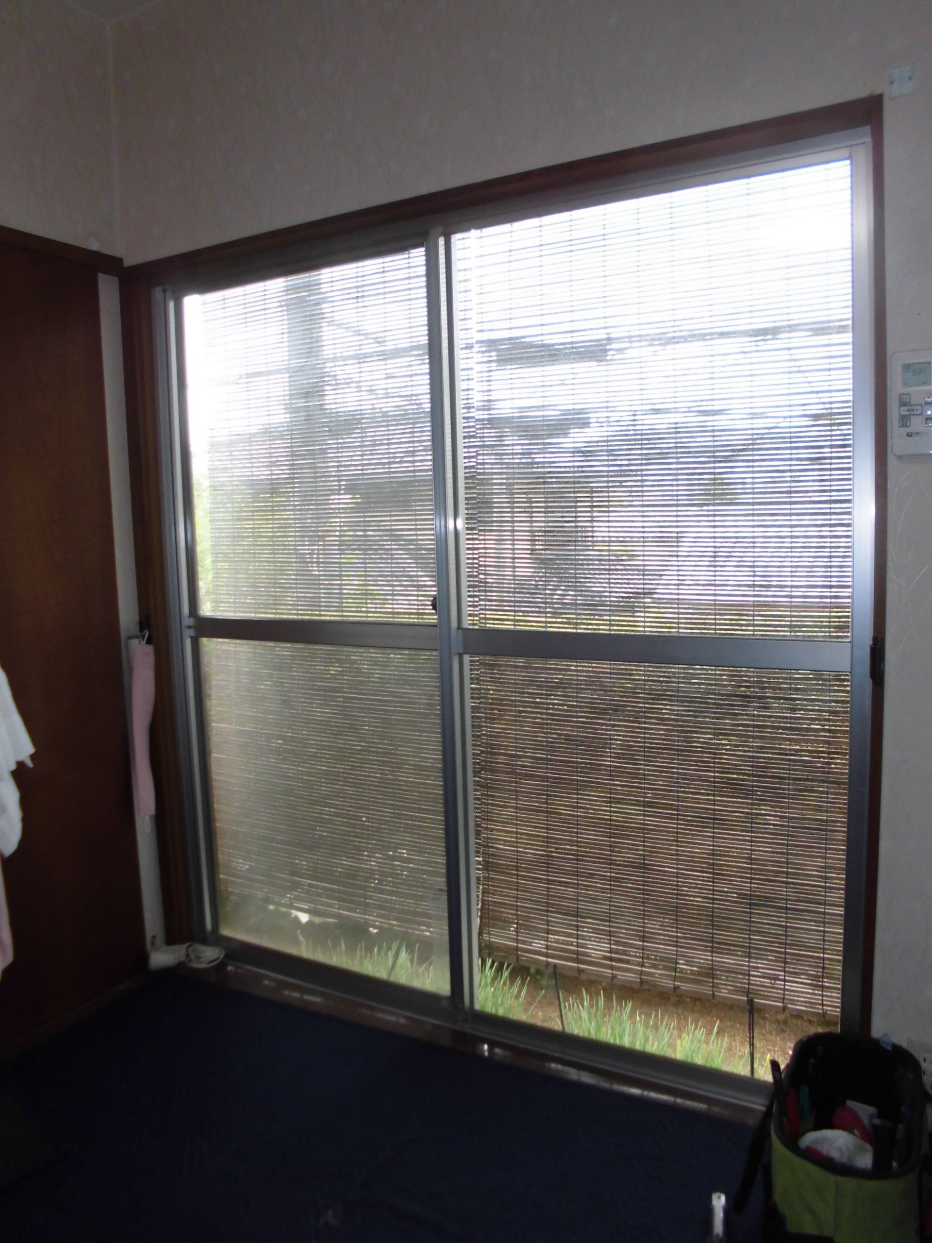 施工後 掃き出し窓と取付方法は全く一緒です。窓を2重にすることによって寒い冬場の冷気も抑えられ、暑い夏の日射熱も既存の窓だけでは88%程、部屋内に進入しますが、今回のLOW-E複層硝子遮熱タイプ仕様は日射熱を40%程迄軽減し、暑い夏も過ごしやすくなります。