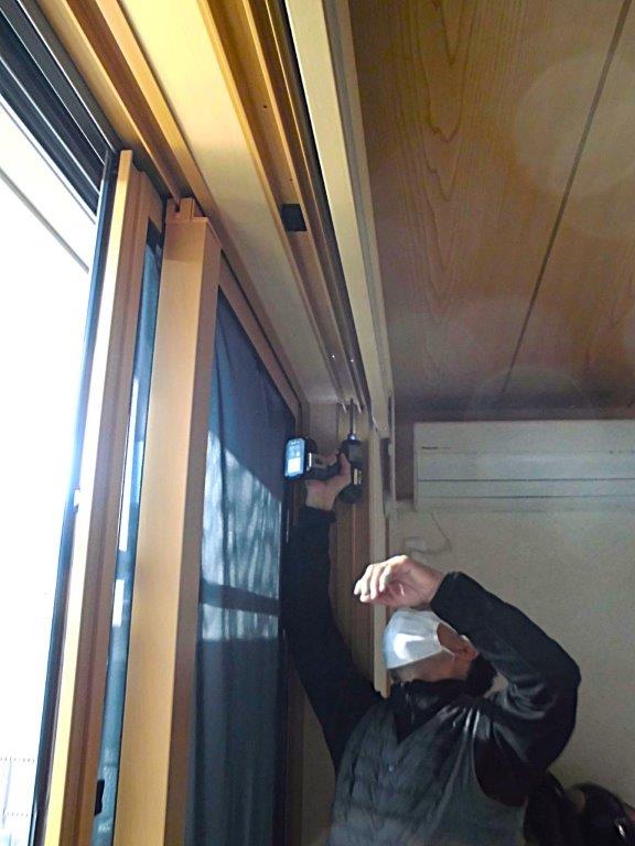 施工中③上部レールを電動インパクトドライバーでビス止めしていきます。