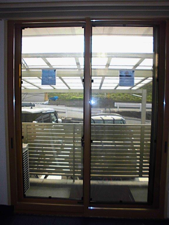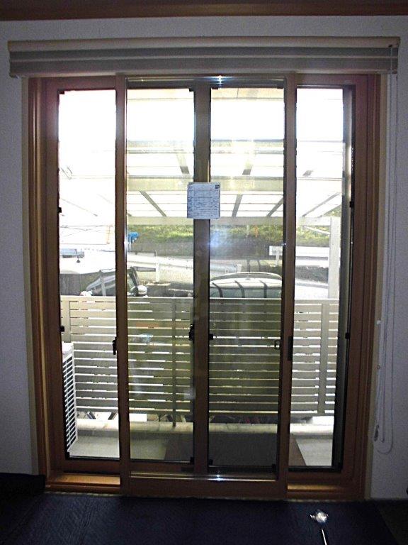 施工後 硝子障子の動作調整、クレセント錠の施錠調整確認、硝子面の清掃をして完成となります。硝子はLOW-E遮熱複層硝子仕様で日射を2.6割カットし、エアコンの効きを向上させます。防音効果も有り図書館レベルまで下がります。