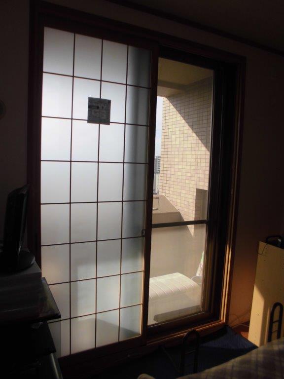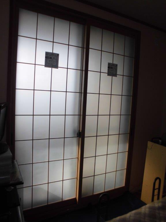 施工後 開閉動作の確認調整をして完成となります。見た目も紙貼障子と変わり無く、硝子と硝子の間にアルミ格子が入っていますので、格子の上に埃が溜まることも無くお掃除も楽になります。もちろん、断熱・防音効果は抜群に上昇致します。
